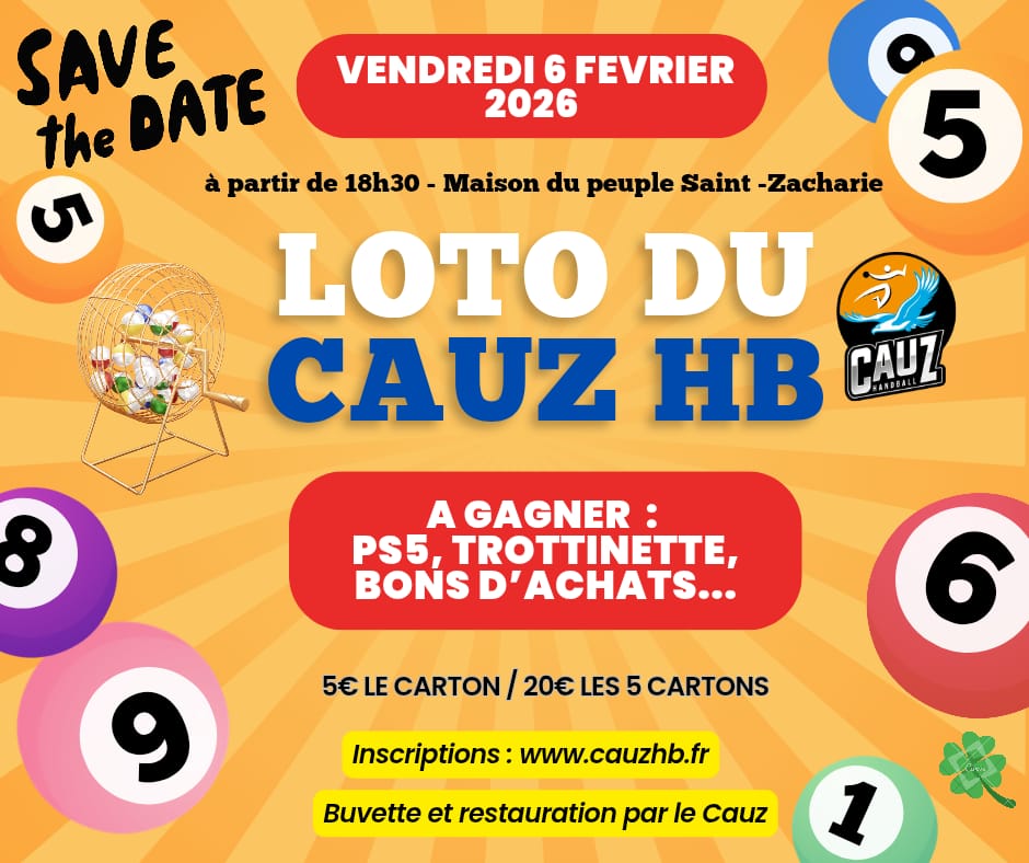 🎉 Le loto qui fait gagner toute la famille ! 📅 le 6 Février 2026 – 📍 La maison du Peuple de Saint Zacharie à 18h 🎁