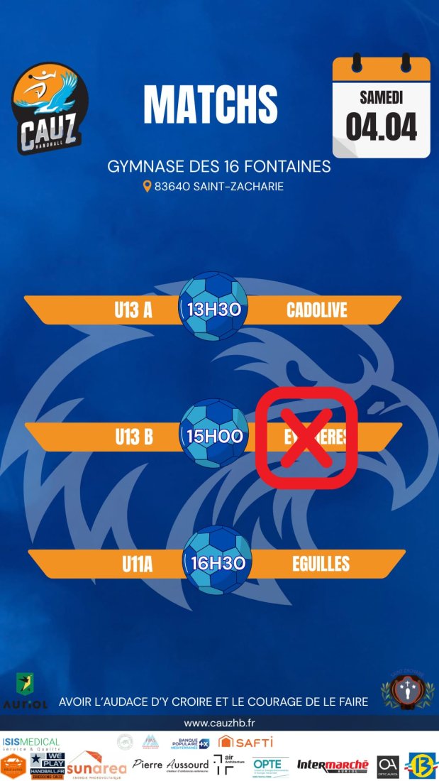 - Forfait des u13F dimanche 5 avril à Gardanne